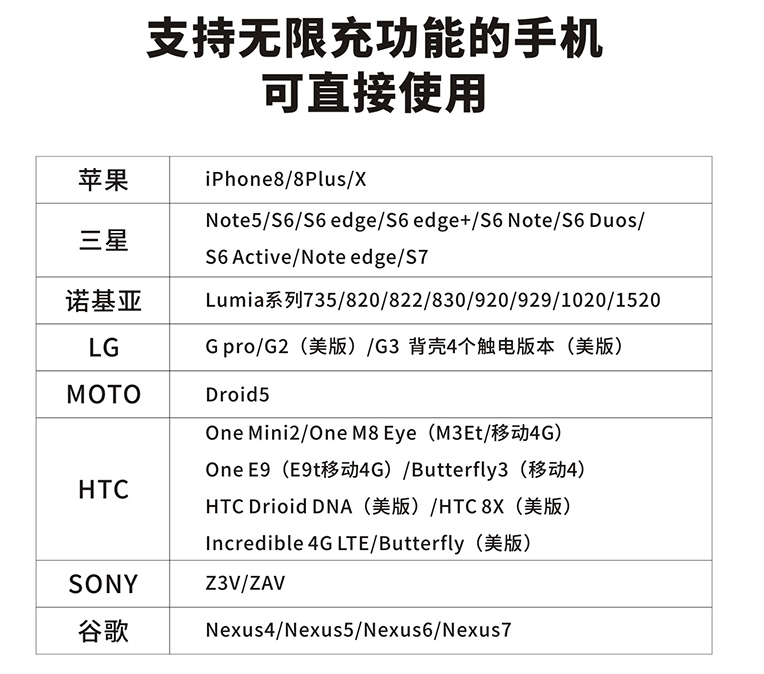 兼容性:兼容所有QI標(biāo)準(zhǔn)的接收器