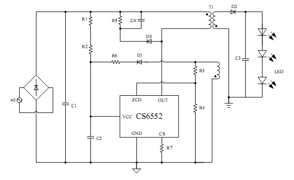 CS6552是一款離線式小功率AC/DC開關電源的高精度原邊反饋LED恒流驅動電路,內部集成600V高壓功率管,適應于85V-265VAC全范圍輸入反激式隔離LED恒流驅動,通過原邊控制實現恒流,無需光耦等次級反饋環路,即可實現高精度的LED恒流輸出,降低成本。CS6552內部集成了多重保護功能來加強系統的穩定性和可靠性,包括VCC欠壓保護,LED開路/短路保護,逐周期限流以及過溫保護等,所有保護均具有自動啟動功能。