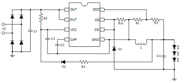 CS8656集成多重保護功能來加強系統(tǒng)的穩(wěn)定性和可靠性,包括VCC欠壓保護,LED開路/短路保護,電流采樣電陰開路路保護,逐周期限流以及智能溫度控制等。
