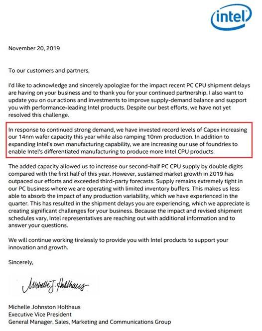 自2018年下半年以來,英特爾一直在應對CPU供應短缺的問題,首先是10納米芯片的延遲交付,然后是14納米芯片的短缺,之后英特爾投資10億美元來擴大其14納米的生產能力,但據消息報道,英特爾14nm制程再次供不應求,并發布了道歉聲明。