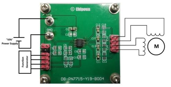 2、將電源“+”與端子 VIN 連接,將電源“-”與端子 GND 連接,并設置合適的電源電壓。